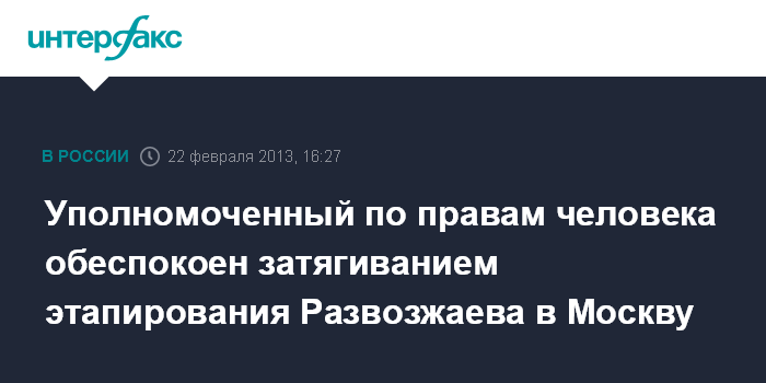 "По информации начальника ГУФСИН России по Иркутской области такое решение (об этапировании) действительно принято и Л.Развозжаева намерены этапировать в Москву 21 февраля 2013 года. Вместе с тем 21.02.2013 при проверке подтверждения факта этапирования Л.Развозжаева установлено, что указанием ФСИН России решение об этапировании отменено до поступления соответствующих документов из Следственного комитета РФ", - говорится в сообщении, размещенном на официальном сайте омбудсмена.