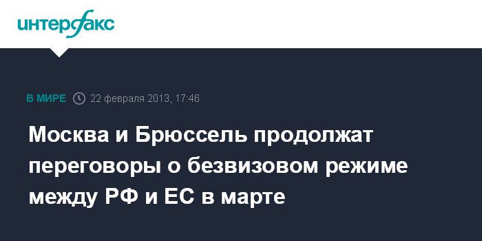 Москва и Брюссель продолжат переговоры о безвизовом режиме между РФ и ЕС в марте