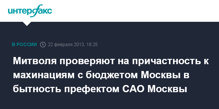 Митволя проверяют на причастность к махинациям с бюджетом Москвы в бытность префектом САО Москвы