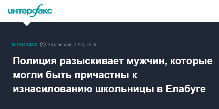 Казань. 23 февраля. INTERFAX.RU - В Елабуге пятый день продолжается поиск насильника, надругавшегося над второклассницей.