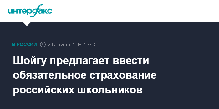 Шойгу предлагает ввести обязательное страхование российских школьников