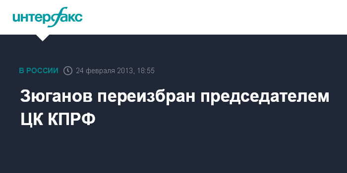 Москва. 24 февраля. INTERFAX.RU - Геннадий Зюганов вновь переизбран председателем ЦК КПРФ. Такое решение единогласно было принято на проходящем в Москве пленуме ЦК партии.