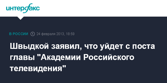 Москва. 24 февраля. INTERFAX.RU - Президент "Академии Российского телевидения" Михаил Швыдкой заявил, что он не намерен оставаться на посту главы телеакадемии и готов уступить его более молодому человеку. "Я считаю, что я по своим возможностям моральное право продолжать возглавлять Академию исчерпал", - заявил М.Швыдкой в эфире радио "Эхо Москвы" в воскресенье.