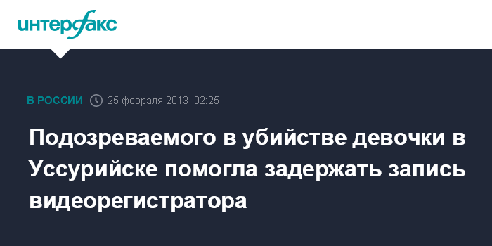 Владивосток. 25 февраля. ИНТЕРФАКС-ДАЛЬНИЙ ВОСТОК - Запись автомобильного видеорегистратора помогла задержать в Уссурийске подозреваемого в убийстве восьмилетней Насти Луцышиной.