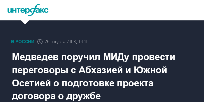 Медведев поручил МИДу провести переговоры с Абхазией и Южной Осетией о подготовке проекта договора о дружбе