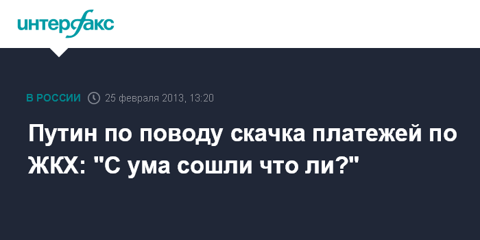 Путин по поводу скачка платежей по ЖКХ: "С ума сошли что ли?"