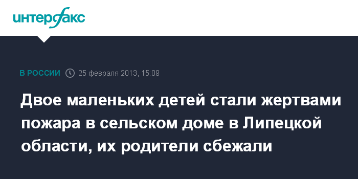 Липецк. 25 февраля. INTERFAX.RU - Двое малолетних детей погибли в ночь на понедельник в результате пожара, произошедшего в частном доме в села Куриловка Усманского района Липецкой области, сообщает следственное управление СКР по региону.