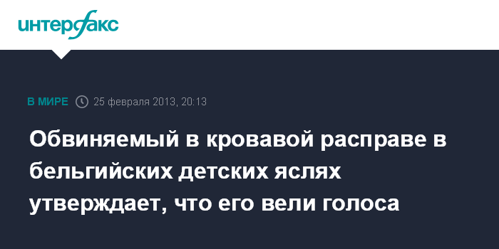 Обвиняемый в кровавой расправе в бельгийских детских яслях утверждает, что его вели голоса