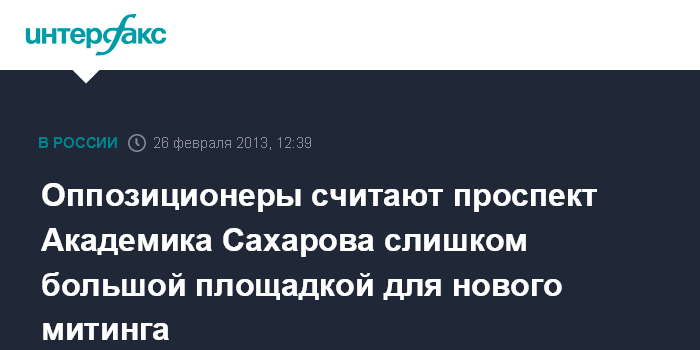 Оппозиционеры считают проспект Академика Сахарова слишком большой площадкой для нового митинга
