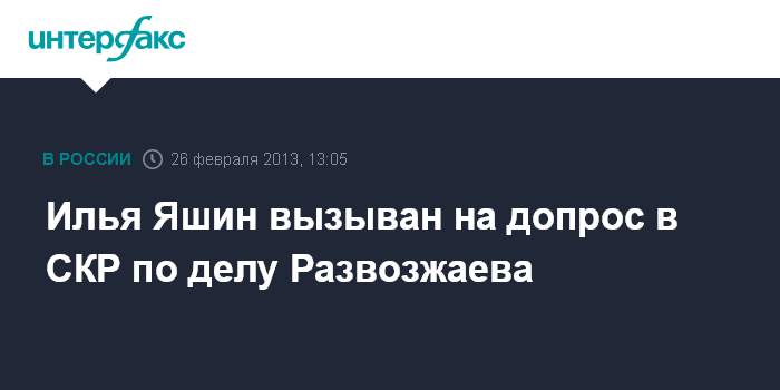 Москва. 26 февраля. INTERFAX.RU - Оппозиционер Илья Яшин сообщает, что его вызывают на допрос в Следственный комитет по делу обвиняемого в подготовке массовых беспорядков в РФ Леонида Развозжаева.