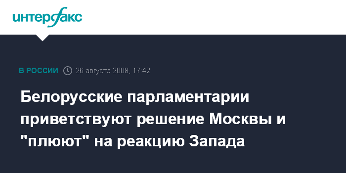Говоря о возможной реакции Запада на принятое Россией решение, белорусский депутат заявил: "Плевать нам на ту реакцию. Их не беспокоила наша реакция, когда они в одностороннем порядке признавали независимость Косово".