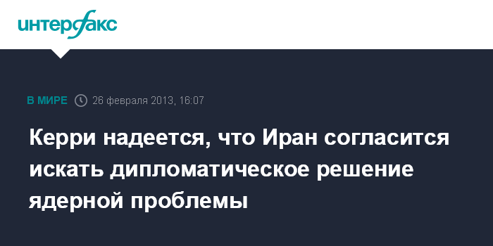 Берлин. 26 февраля. INTERFAX.RU - США надеются, что Иран согласится встать на путь дипломатического решения ядерной проблемы, заявил во вторник в Берлине госсекретарь США Джон Керри.
