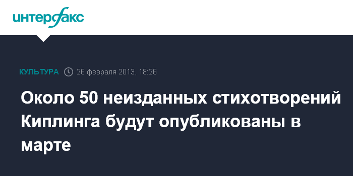 Лондон. 26 февраля. INTERFAX.RU - Более 50 стихотворений английского писателя Редьярда Киплинга будут впервые опубликованы 7 марта, пишет британская газета The Guardian.