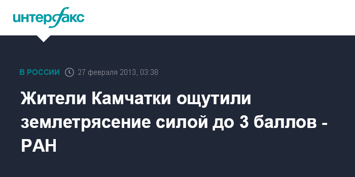 Жители Камчатки ощутили землетрясение силой до 3 баллов - РАН