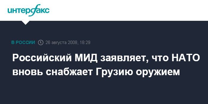 Бочаров ручей. 26 августа. INTERFAX.RU - НАТО начинает новые поставки вооружения в Грузию, заявил глава МИД РФ Сергей Лавров.