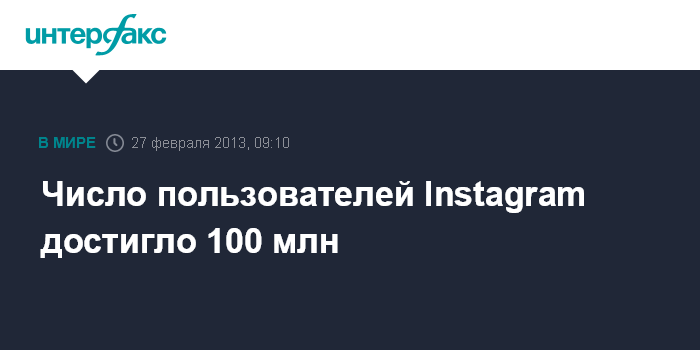 Сан-Франциско. 27 февраля. INTERFAX.RU - Число пользователей приложения для обмена фотографиями Instagram достигло 100 млн, сообщил один из его разработчиков Кевин Систром. "Примерно через 2,5 года свыше 100 млн людей используют Instagram каждый месяц", - написал он в своем блоге.