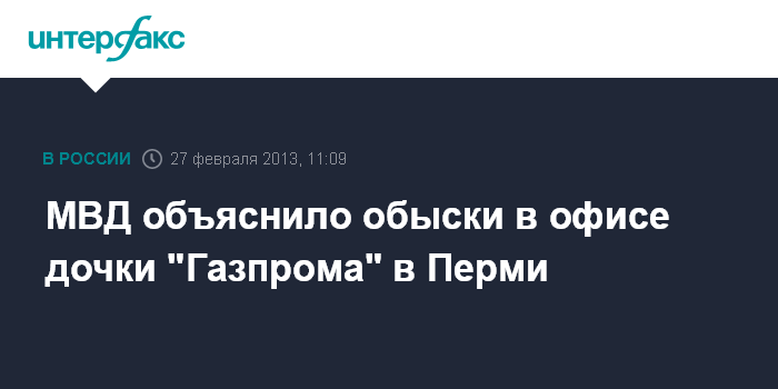 МВД объяснило обыски в офисе дочки "Газпрома" в Перми