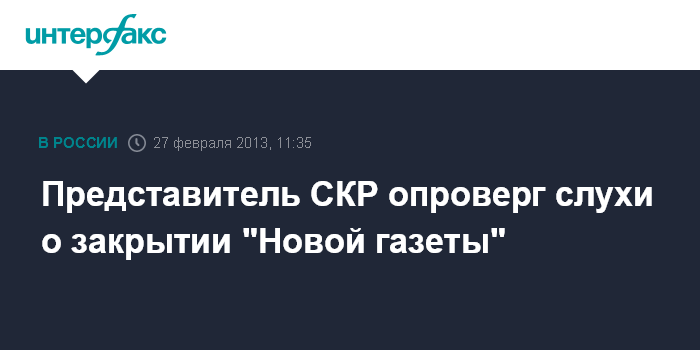 Представитель СКР опроверг слухи о закрытии "Новой газеты"