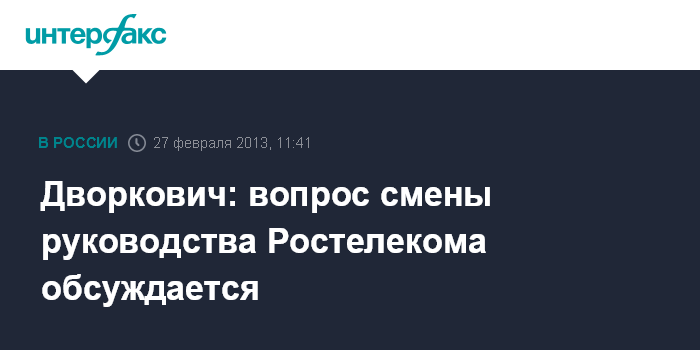 Москва. 27 февраля. INTERFAX.RU - Вопрос смены руководства ОАО "Ростелеком" является открытым и обсуждается, сообщил вице-премьер Аркадий Дворкович.