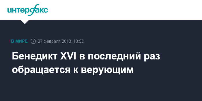 Рим. 27 февраля. INTERFAX.RU - Папа римский Бенедикт XVI в Ватикане в последний раз обращается к верующим, передает итальянское телевидение.