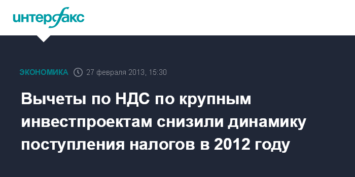 Вычеты по НДС по крупным инвестпроектам снизили динамику поступления налогов в 2012 году