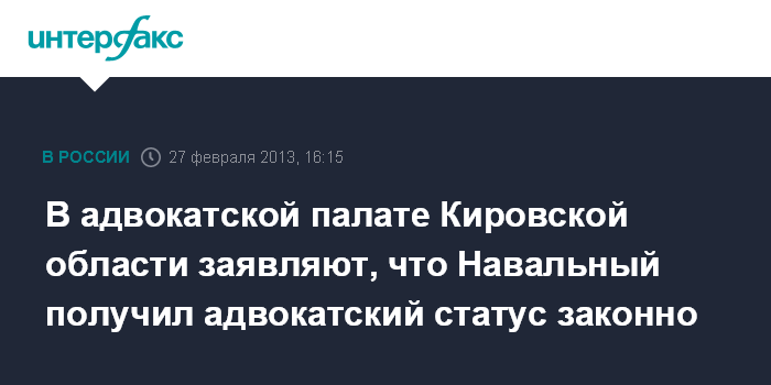 В адвокатской палате Кировской области заявляют, что Навальный получил адвокатский статус законно
