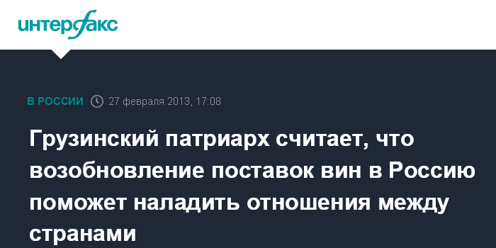 Грузинский патриарх считает, что возобновление поставок вин в Россию поможет наладить отношения между странами