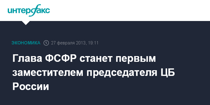 Глава ФСФР станет первым заместителем председателя ЦБ России