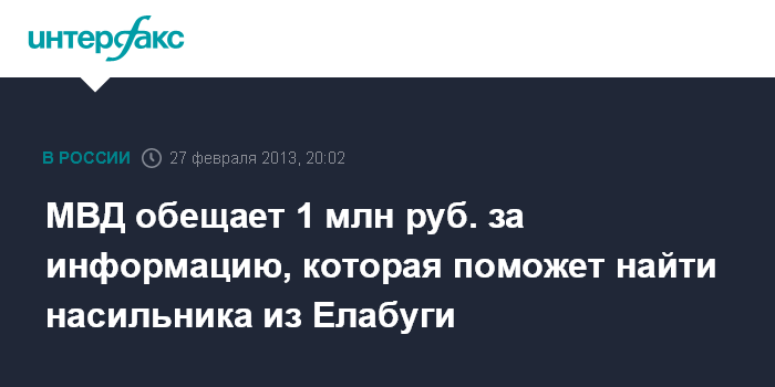МВД обещает 1 млн руб. за информацию, которая поможет найти насильника из Елабуги