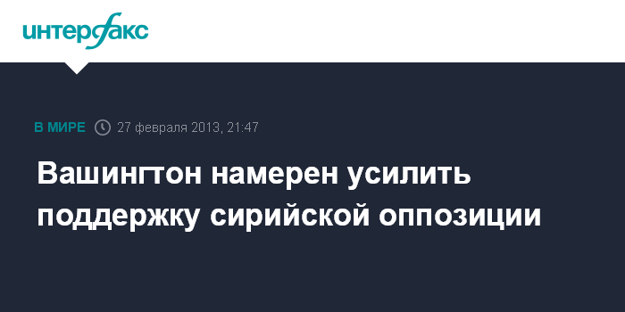 Вашингтон. 27 февраля. INTERFAX.RU - США усилят поддержку сирийцев и сирийской оппозиции для того, чтобы ускорить политический переход в этой стране, сообщил в среду представитель Белого дома Джей Карни.