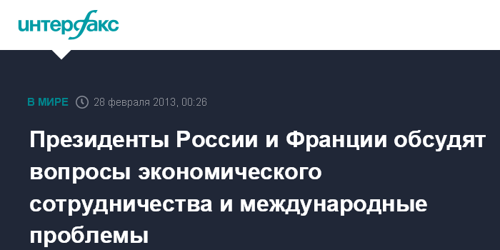 Президенты России и Франции обсудят вопросы экономического сотрудничества и международные проблемы