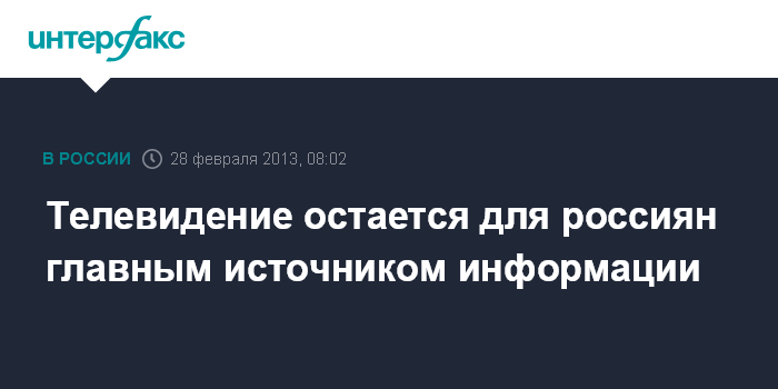 Москва. 28 февраля. INTERFAX.RU - Телевизор является основным источником получения информации для россиян, его ежедневно смотрят 75% граждан России, выяснили социологи.