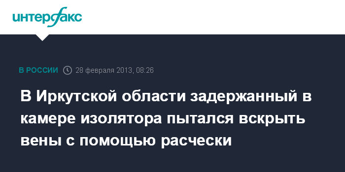 В Иркутской области задержанный в камере изолятора пытался вскрыть вены с помощью расчески
