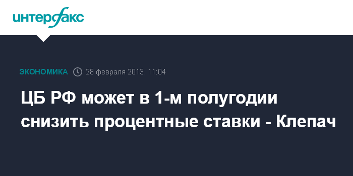 28 февраля. FINMARKET.RU - ЦБ РФ может в течение первого полугодия 2013 года снизить процентные ставки на 0,25 процентного пункта, сообщил "Интерфаксу" заместитель министра экономического развития РФ Андрей Клепач.