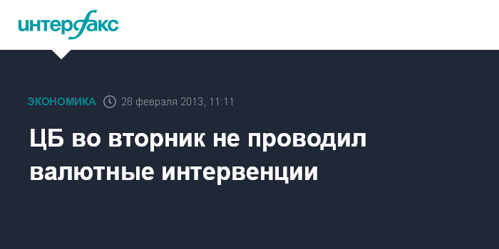 ЦБ во вторник не проводил валютные интервенции