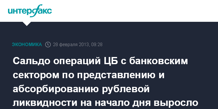28 февраля. FINMARKET.RU - Сальдо операций Банка России с банковским сектором по предоставлению и абсорбированию рублевой ликвидности со сроками исполнения, приходящимися на 28 февраля по данным на начало операционного дня выросло до -63,4 млрд руб.