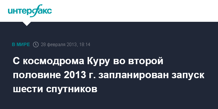 С космодрома Куру во второй половине 2013 г. запланирован запуск шести спутников