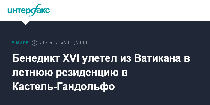 Рим. 28 февраля. INTERFAX.RU - Папа римский Бенедикт XVI покинул резиденцию в Ватикане.