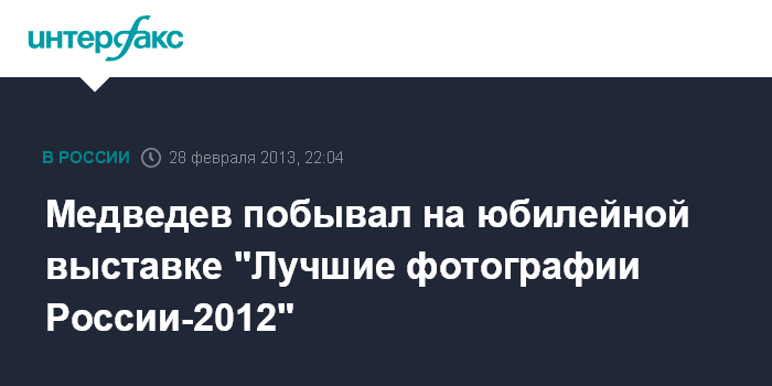 Москва. 28 февраля. INTERFAX.RU - Премьер-министр РФ Дмитрий Медведев в четверг посетил пятую юбилейную выставку "Лучшие фотографии России-2012" на "Винзаводе".