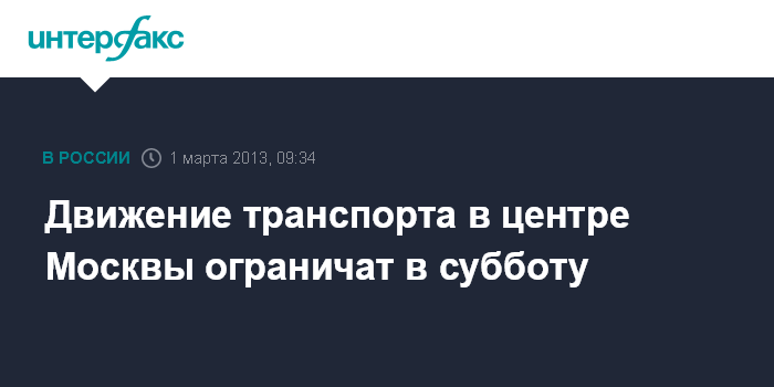 Москва. 1 марта. INTERFAX.RU - Движение по ряду улиц в центре Москвы будет ограничено из-за массовых акций в субботу, сообщили "Интерфаксу" в пресс-службе Управления ГИБДД Москвы.