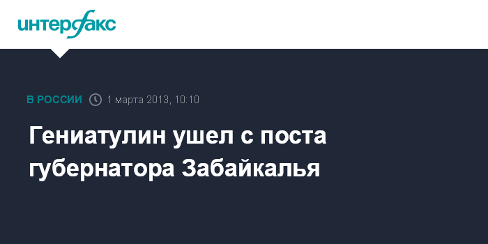 Чита. 1 марта. INTERFAX.RU - Равиль Гениатулин в пятницу завершил свою работу в качестве губернатора Забайкальского края, сообщает пресс-служба главы региона.