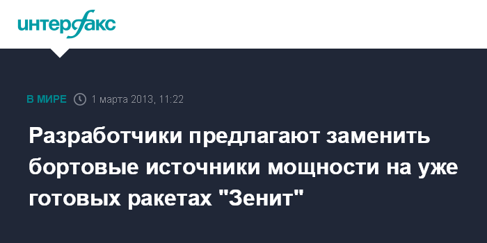 Разработчики предлагают заменить бортовые источники мощности на уже готовых ракетах "Зенит"