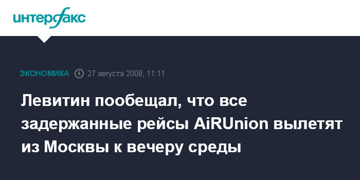 Левитин пообещал, что все задержанные рейсы AiRUnion вылетят из Москвы к вечеру среды