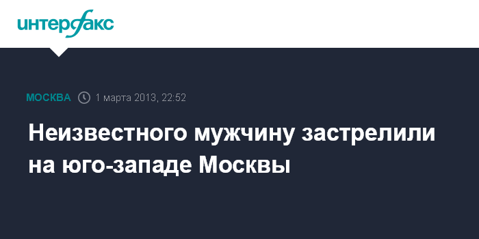 Москва. 1 марта. ИНТЕРФАКС – Неизвестный вечером в пятницу застрелил мужчину на Мичуринском проспекте в Москве, сообщили «Интерфаксу» в пресс-службе столичного ГУ МВД России.