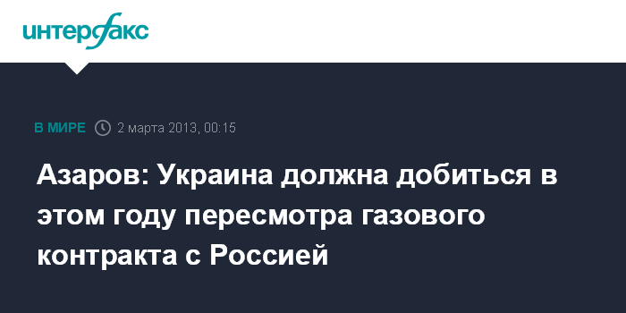 Киев. 2 марта. ИНТЕРФАКС-УКРАИНА - Газовые договоренности с Россией должны быть пересмотрены в этом году, заявил премьер-министр Украины Николай Азаров.