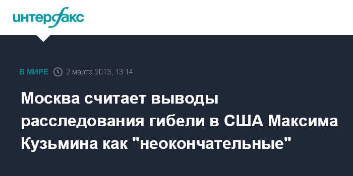 Москва считает выводы расследования гибели в США Максима Кузьмина как "неокончательные"