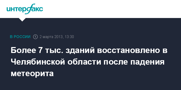 Более 7 тыс. зданий восстановлено в Челябинской области после падения метеорита