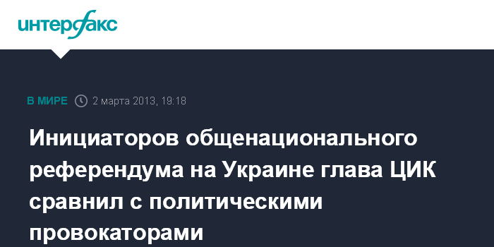 Инициаторов общенационального референдума на Украине глава ЦИК сравнил с политическими провокаторами