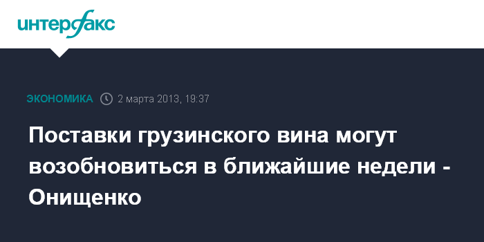Поставки грузинского вина могут возобновиться в ближайшие недели - Онищенко