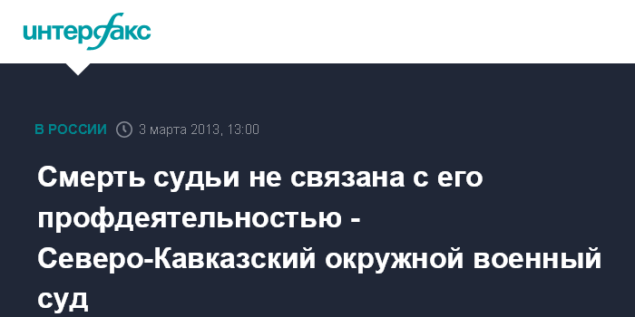 Смерть судьи не связана с его профдеятельностью - Северо-Кавказский окружной военный суд